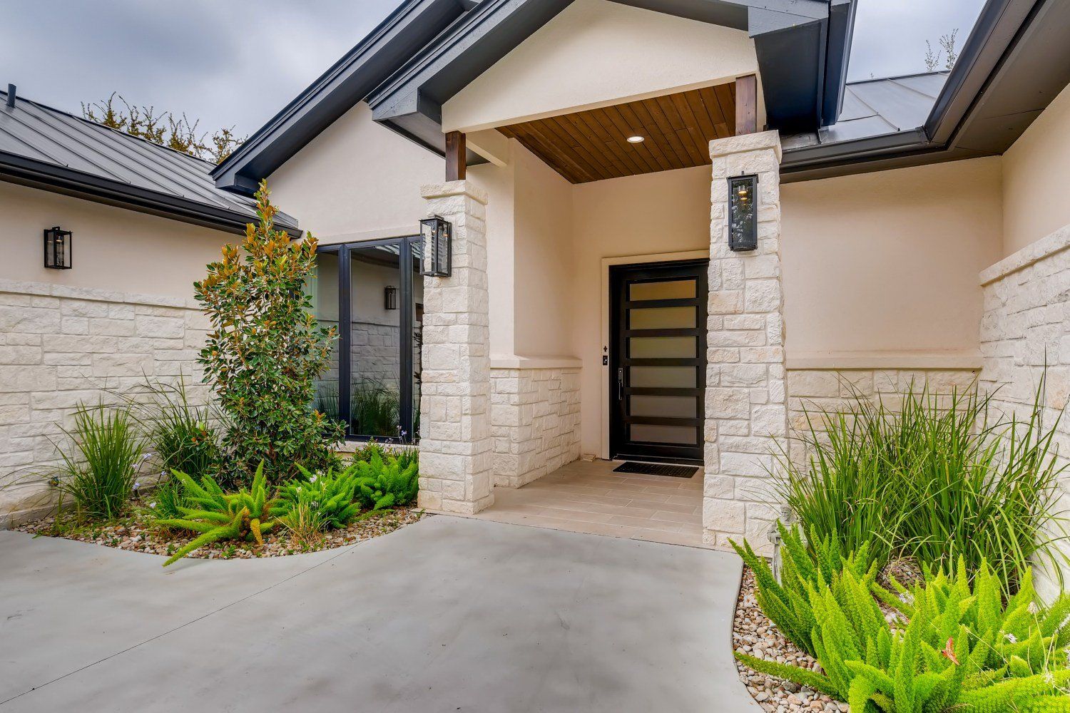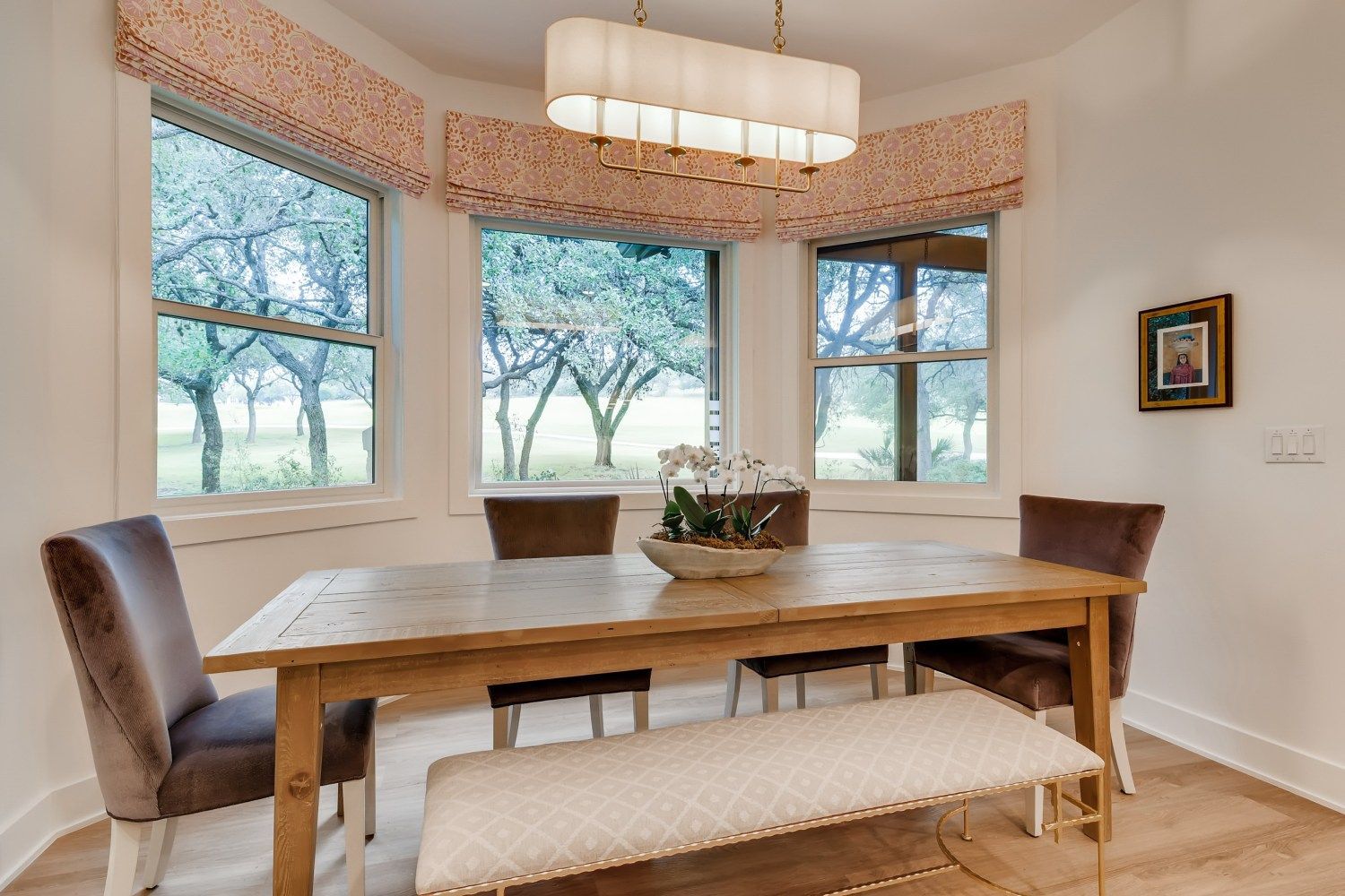 Observe the timeless allure of this Texas Hill Country oasis, where metallic gold accents and rough hewn wood marry modernity with rustic comfort.