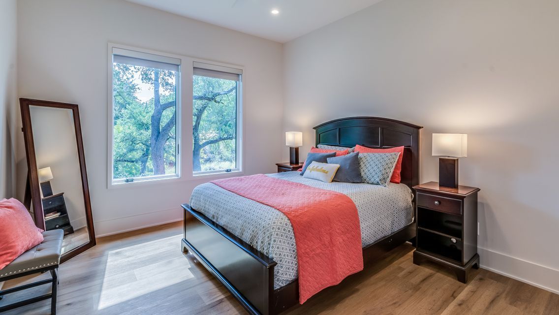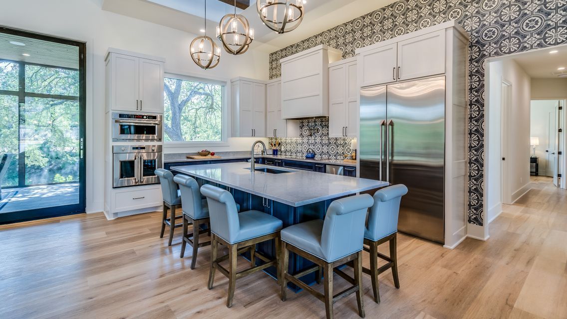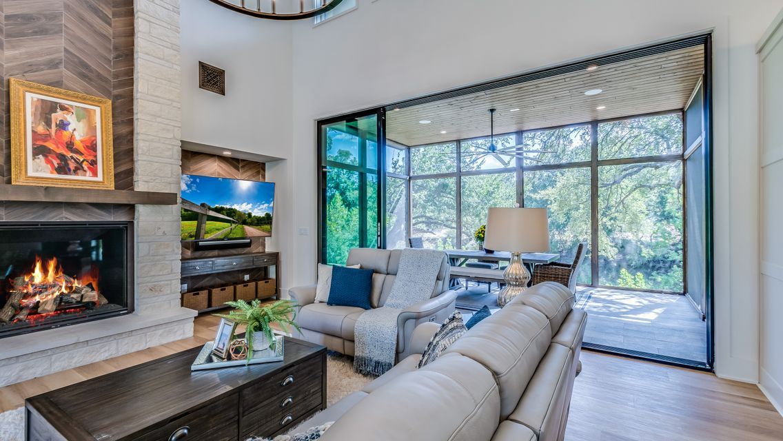 Bold slatted siding, clean landscaping, and stacked stone bring fresh, modern energy to a thoughtfully and excitingly elegant design.