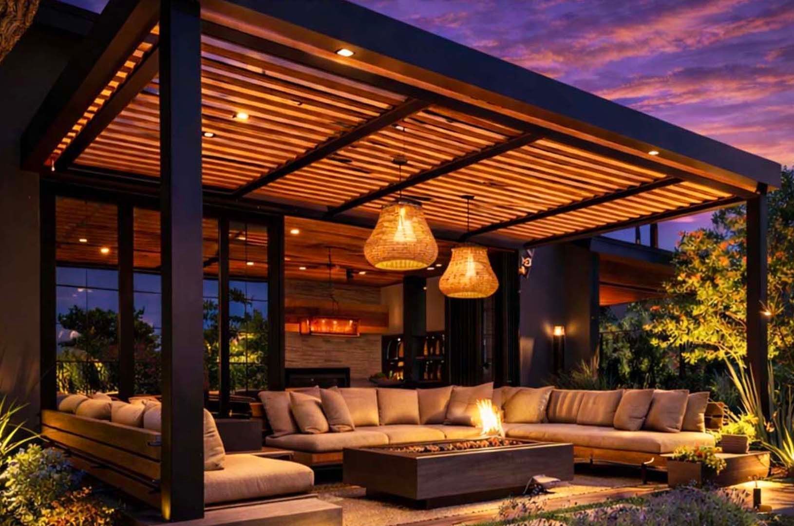 The Louvre delivers the ultimate in flexibility and modern outdoor comfort. Featuring a fully motorized louvered roof system, the adjustable panels open to welcome natural sunlight and fresh air — then close seamlessly to create a rain-tight, weather-protected space at the touch of a button.